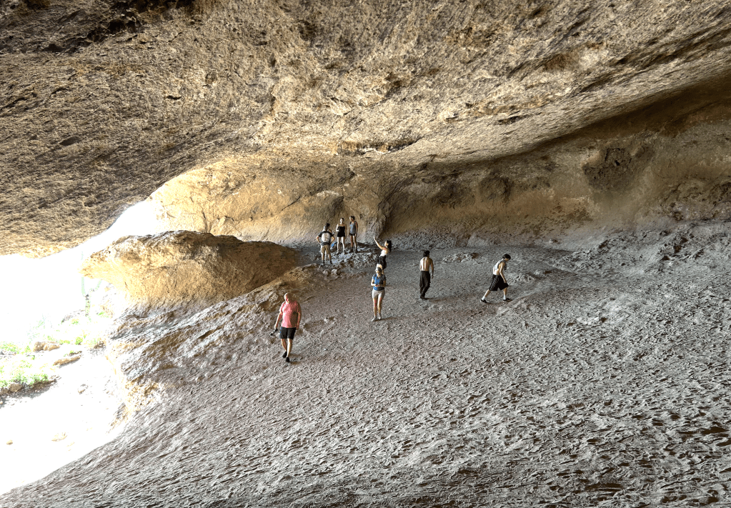 My 7-mile 2,500 foot hike eventually turned into a 10.5-mile 3,200 feet hike – not exactly what I planned for a “training” hike! The first glitch was that the trailhead parking lot was full and I had to go to an overflow parking area that added 2 miles to the roundtrip. The second was that I missed the turnoff to the Three Sisters trail and ended up hiking to the “Wave Cave” along with what seemed to be half of the population of Phoenix. I kept wondering why all these teenagers with no hiking gear would be going on a “steep and strenuous” hike, but – DUH! – it never occurred to me to check the All Trails app. The trail ended at the Wave Cave and there was no way to bushwack to my trail, so I had to just loop back to the missed turn and start over. This added 1.5 miles and 700 feet.