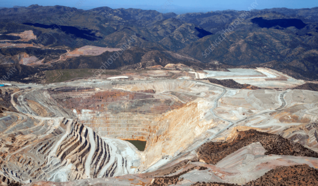 Many of the mines are now inactive, but one of the largest reserves in the US is under Superior AZ, 20 miles from Miami. Owned by the Resolution mining company it is estimated to contain 1.8 billion tons of ore and could produce 40 billion pounds of refined copper. The Resolution deposit mining process would be amazing in its own right, since the deposits are up to 4,000 to 6,000 feet below the surface open pit mining impossible. To get to this ore requires using what is called “block mining”, a technique where they hollow out a huge hole below the ore deposits and the set off blasts that result in the ore falling into the hole. The crushed ore is then transported to the surface through large tunnels.