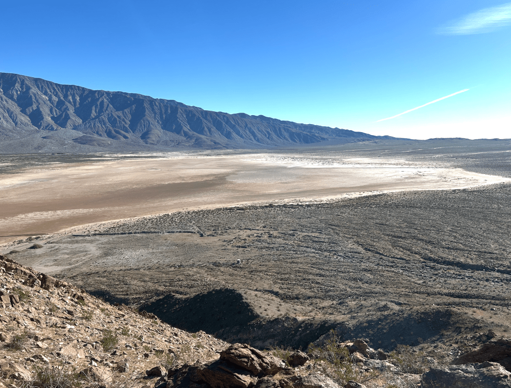 Coyote Peak overlooks the Clark Dry Lake, an expansive, flat, and sandy lakebed that every once in a while, can temporarily flood after heavy rains. It was a low impact hike – under 6 miles and only 2,300 feet of vertical – with the added benefit of being a “private mountain” day hike – I didn’t meet anyone the entire time.