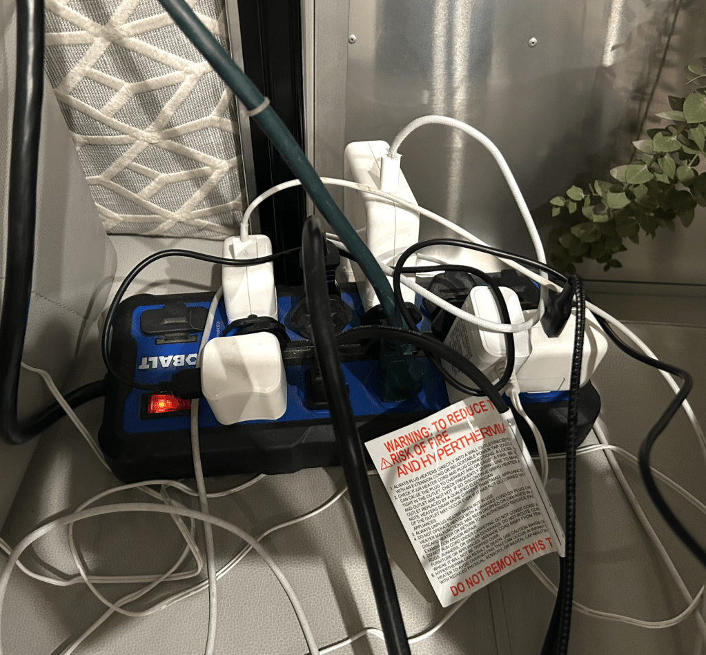 On Friday at 2 pm, we headed on the road to our next neighborhood, five hours north in Carmel, more appreciative of the comfy cocoon of aluminum we were living in than ever before – and now armed with the equipment and protocols to handle the next power failure. Bring it on! We have everything we need! It can’t harm us!