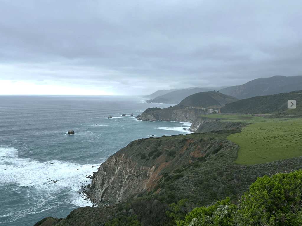 By the time we got to Pismo Beach, we had traveled for over 100 days with only 5 days of rain, only two of which were serious downpours. In other words, a 95% sunny trip. That’s why you travel to the Southwest in the winter, right? Well, the tides turned, starting with several days of rain in Pismo. We did have a clear day for the drive up the Central Valley to Carmel, and one partially clear day to drive down the famous Route 1 Pacific Coastal Highway to Big Sur.