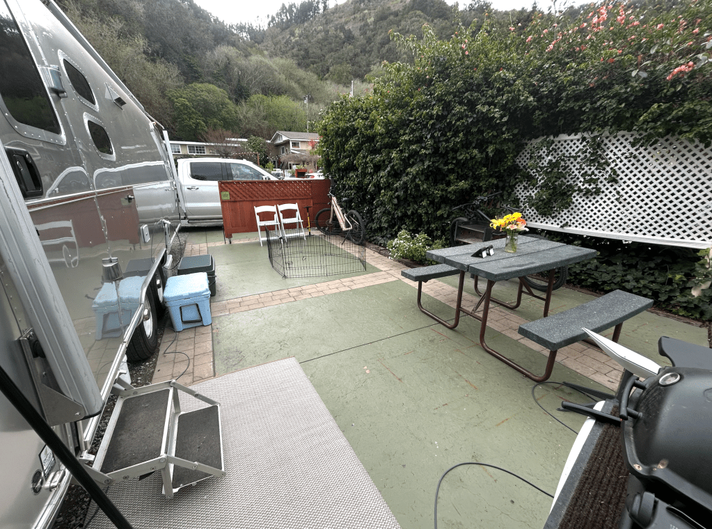 So we headed out of Carmel for Napa Valley feeling like we had smoothed out some bumps in our road. Our trailer was fixed, the weather was great, and Bob was back. We had learned a lot – about ourselves, our home on the road, and our canine companions. And we had a renewed appreciation for all the blessings our Grand Adventure has brought.